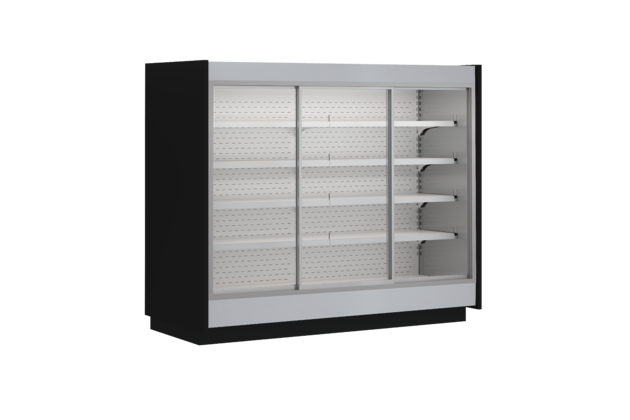 hloubka 900 x výška 2000 / 2200 mm - chladicí přístěnné regály série „R-P-DR“ jsou zařízení vyrobené s cílem snížení spotřeby elektrické energie. Konstrukce zařízení vychází ze série R-P, ale díky použití bočnic s lepší izolací a termoizolačních posuvných dveří, se spotřeba elektrické energie snížila o 45%.