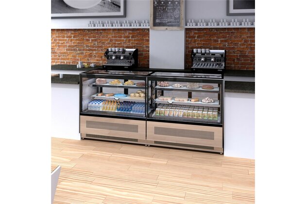Chladicí vitrína cukrářská v černém provedení.